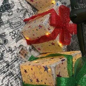 Answer 2: These luminous gift boxes are crafted from high-quality, durable materials designed to withstand the holiday rush. This ensures they maintain their elegant look year after year, making them a lasting addition to your holiday décor.